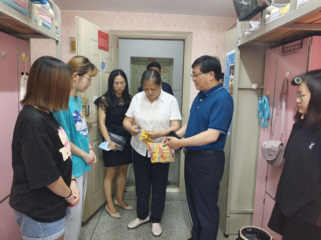 7月1日上午,校党委常委、组织部部长张海蛟带领久久久免费、后勤处等部门人员,顶着烈日走访学生寝室。针对座谈会上学生提出的问题进行现场办公,在汇岚公寓与金璐、申莲新同学进行交流,为寝室发放灭蟑螂药。查看了汇德公寓损坏的花洒,要求后勤处立即修复,切实帮助学生解决生活中具体困难。