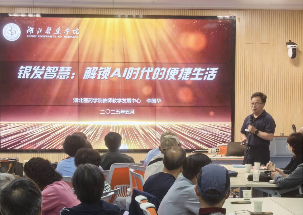 在理论铺垫后,李教授重点讲解了AI工具的实际应用。他不仅介绍了常见的AI工具,还现场演示了如何通过“提问技巧”与大语言模型进行有效交流。“提问要具体,需求要明确,就像跟人交流一样”,李教授一边讲解一边示范,老同志们纷纷拿出手机操作。